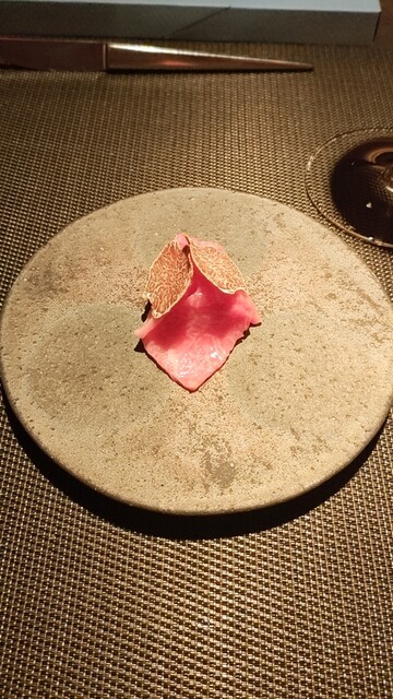 さらにお口直しに出てる純米酒を液体窒素で固めたもの・・・私たち夫婦にはこちらがきつくむしろこれを食べた後にお口直しをする羽目になってしまいました^^;