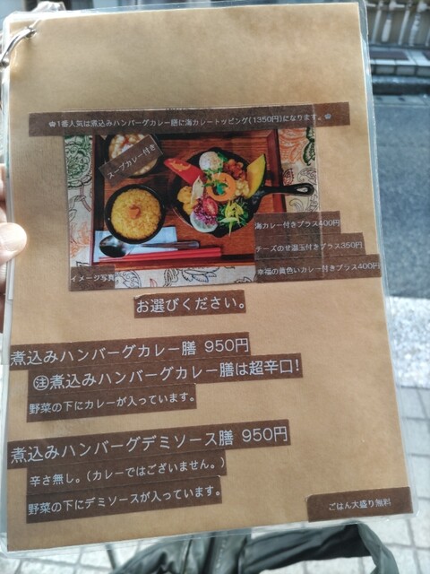 次回は、煮込みハンバーグのデミグラスソースに海のカレーをトッピングしてみたいと思います。