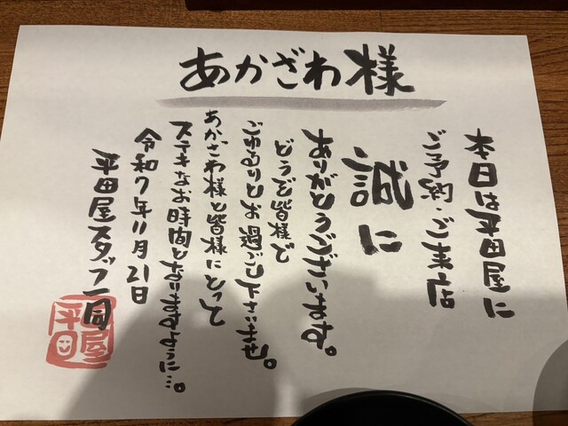 金曜日の19時ごろ、元同僚と初めての平田屋さんへ
