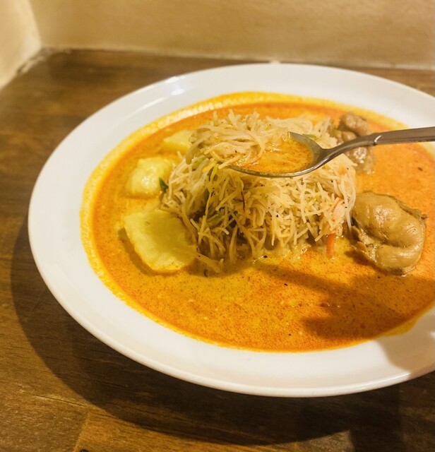 しかし驚きの美味しさ!本当にたまらなく美味しい。ココナッツとスパイス(30種類以上)のカレーでヌードルと混ぜながらいただいているとラクサのようにも思えます。これ!めちゃくちゃ好きだわ、、と思いました。