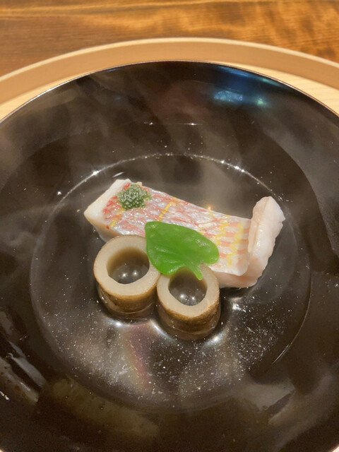 ◇ エボ鯛 練りたての胡麻豆腐に春菊のすり流し