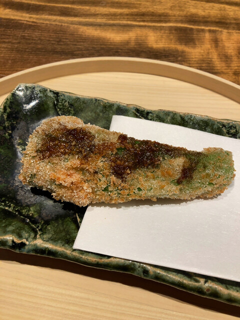 太刀魚の麻機蓮根包み揚げ 太刀魚のふくよかさが蘇ります。