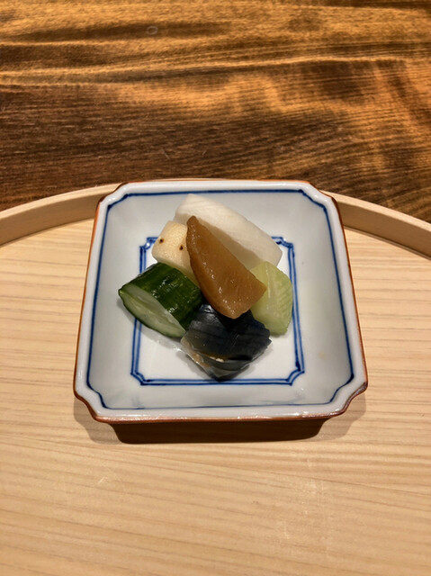ほんのり灯りが灯るお店の前にご一緒さまがおひとり。時間になって露路を抜け、席に案内していただきました。