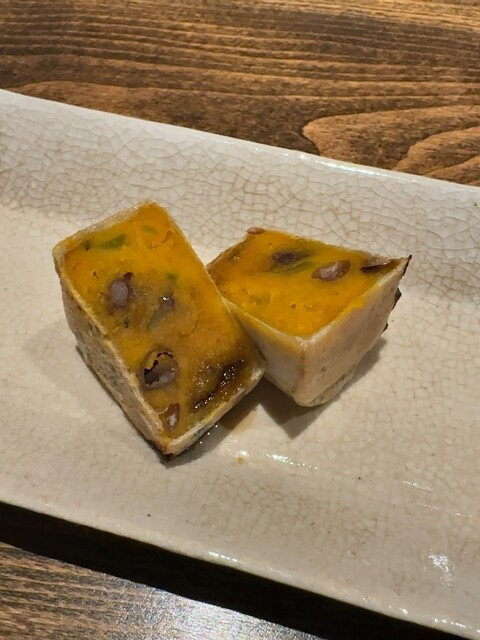 南瓜と小豆のきんつば。焼き立て。買って帰りたいほどの美味しさでした。
