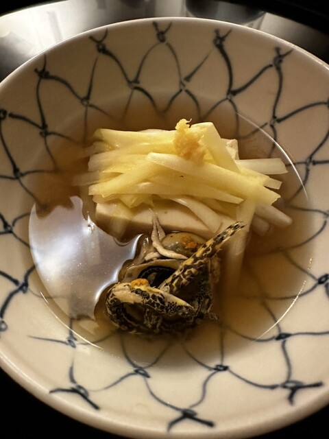 白味噌仕立てのひろうすは初めて。粗く刻んだ芝海老にはお豆腐がところどころ存在感あります。