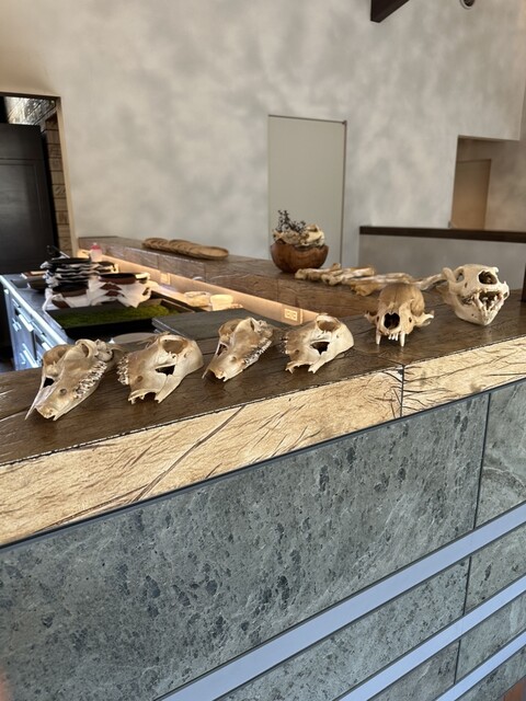 専属漁師が近くの山で射止めた熊を熟成後、薪で炙って。