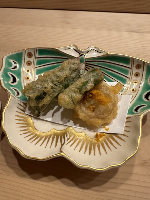 オクラには牛タンが詰まっています。塩と唐墨パウダーで。