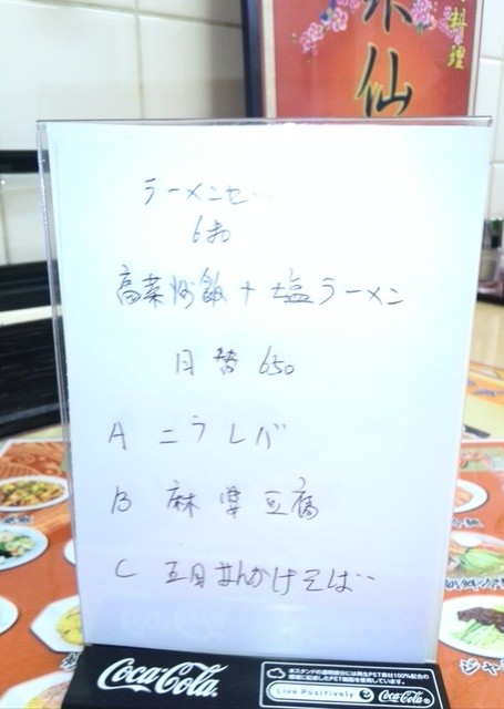 本日は土曜日ということで、平日のランチよりランチメニューが少なく、Aニラレバ炒め・B麻婆豆腐・Cあんかけ焼きそばの各定食(各650円)で、あとはラーメン類と丼ものをセットメニュー(各680円)であった。