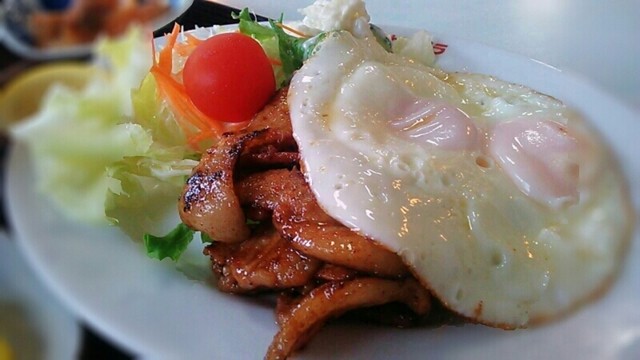ハンバーグは豚挽肉メインの昔ながらのやつで、デミケチャソースと相まってご飯がススムくん。豚焼肉は甘辛い味付けでオイリーさも加わりさらにご飯がススムくん。