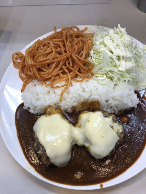 新橋のオムライスの名店。いつもはオムライスかオムドライを頼むのですが、本日は趣向を変えてハンバーグ丼に挑戦。オムライスの代わりにご飯とデミグラスソースがたっぷりかかったハンバーグが2つ乗ってます。味付...