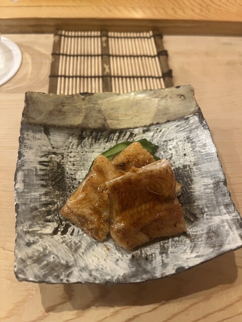 穴子の焼き物も信じられないくらい身のしっとりほくほく感と皮のパリッと感のギャップがすごい。