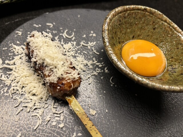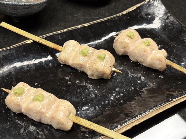 わあ、焼き鳥とそばがこんなに高級なものだとは知りませんでした。SOBATORIは高級な焼き鳥とそばのお店です。インテリアデザインにもこだわり、伝統的な雰囲気を現代風にアレンジしています。席に着いたら、ドリンクを注文しましょう。ドリンクメニューも充実しています。まずはビールから始め、続いて焼酎とジントニックを注文しました(ジントニックには黒胡椒が入っていて、私はこれが気に入りました)。前菜は3品。鰻のゼリー、梅ソースで煮込んだ鶏軟骨のきゅうり添え、そして大根のスープをいただきました。焼き鳥コースは、鶏むね肉、鶏の首、玉ねぎ、レバー、鶏ひき肉と味噌を和えたナス、卵黄に浸した鶏つくね、レバーペーストとバゲット、鶏ガラスープ、鶏もも肉、ズッキーニ、鶏のハツ、レンコン、手羽先、フォアグラと椎茸の固めの上に溶けたブルーチーズ、上質な卵黄とハツ、そば、わらび餅、抹茶で構成されていました。これは最高に美味しい焼き鳥で、今まで食べた焼き鳥の中で最高の食べ方でした。サービスも素晴らしかったです。ただ残念なのは、この店がショッピングモールの一角にあり、市内中心部にもっとないということです。もっと多くの人がSOBATORIに簡単に行けるようになれば良いと思います。とても良かったです!