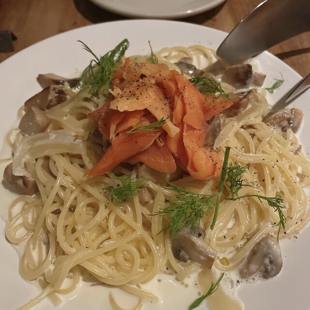 まずブルスケッタはシラスがそこまで好きではない妻でも、めちゃくちゃ美味しいといいつつ、白ワインと合わせ...