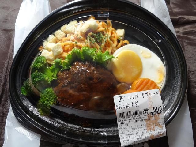彩りに惹かれて"匠"ハンバーグプレート(500円)を購入しました。