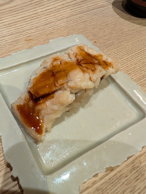 お寿司は、どれもお座敷上で美しいです。赤酢のシャリが口の中で、ほどけて旨みを残してなくなる感じ。