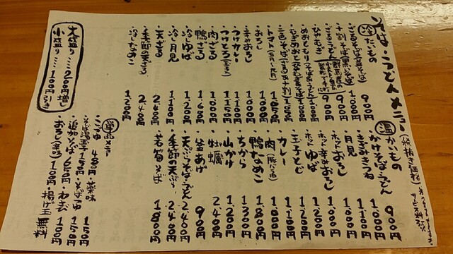 そば・うどんメニュー