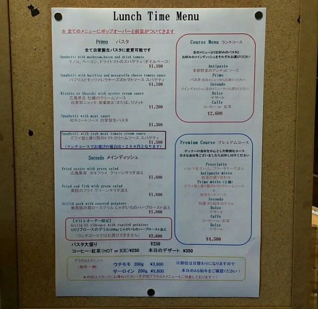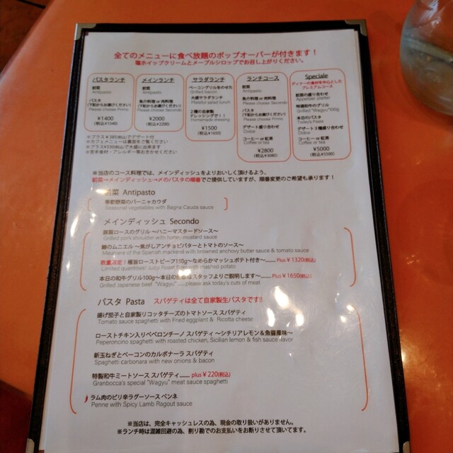 ※生パスタに変更、ポップオーバー、前菜付き