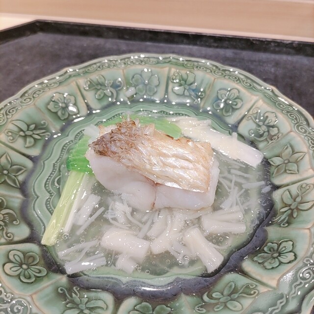 甘鯛(萩産)の松笠揚げ 帆立の餡