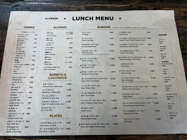 チリチーズバーガー1,980円と生ビール750円を注文。