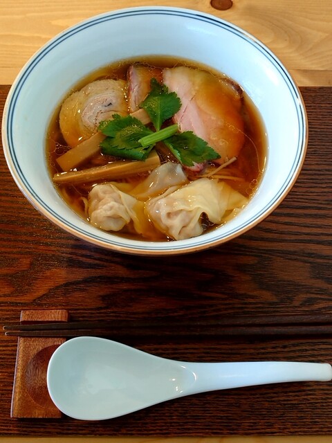 集合時間に行き、らぁ麺が出てくるまで約15分。何とも美しく醤油のいい香りです。チャーシューも国産を使用。ワンタンも弾力のあるワンタン。そしてつるつるでなめらかさのある麺は他とは違う初めての食感でした。スープも透明で私にはストライクな味です。何もかも美味しかったぁ。