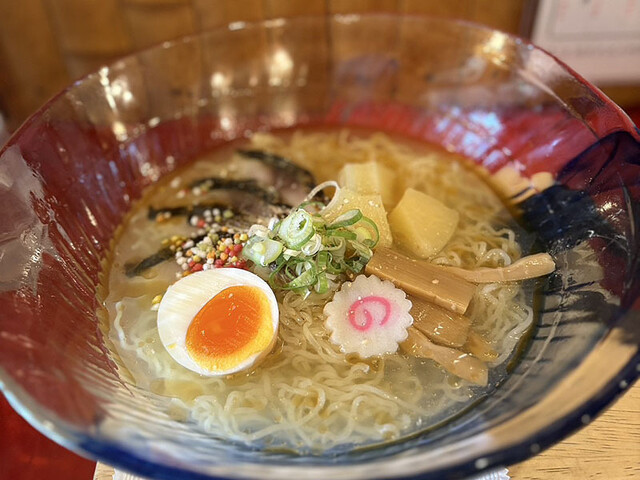 中太の麺に冷たい塩味スープ。細長いメンマに揚げ煮玉子、白キクラゲ、糸とうがらし、炙りチャーシュー、海苔、大葉、そして梅の蜂蜜漬け。 ひんやりして、キクラゲやメンマがしゃきしゃきしていて、夏場なら何杯でも食べられそうです。スープまで飲み干して完食。来年もあるといいな。