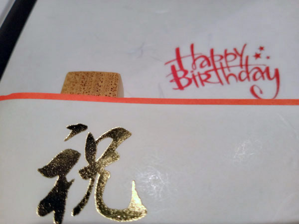 息子の誕生祝いに、豊橋駅前近くのげん屋を予約。受付時に「誕生祝いに美味いウニを食べさせたくて」と伝えたら、ちゃんと祝い膳が用意してありました。こういう心遣いがうれしいですね。途中で飲み物のサービスとシメのデザートがちょっと豪華に登場。色の変わるお祝いグラスが素敵でした。