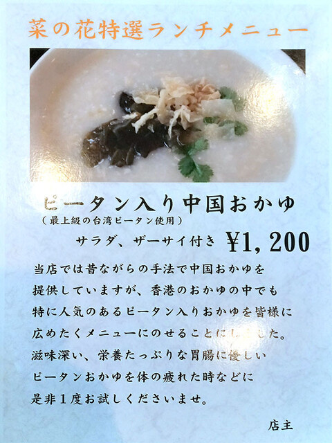 今日のランチは香港カレーか油淋鶏、お粥かカニ炒飯という並びなので、粥や炒飯にも惹かれつつカレーと油淋鶏で。