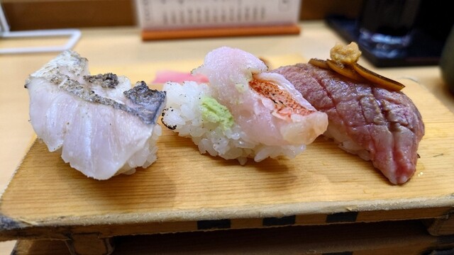 この日の3貫は(和牛、太刀魚、秋刀魚)