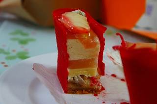 定期的におじゃましています、真剣に商品と向き合うオーナーシェフと季節の素材を活かした、タルトや洋菓子、いつおじゃましても、どれを食べても満足できるお店です。2013年9月2日(月)で3周年、9/1,9/2に来店されたお客様には、新しい商品をプレゼントする予定だとか、それが、写真のゼリーです(笑 フライングゲット!
