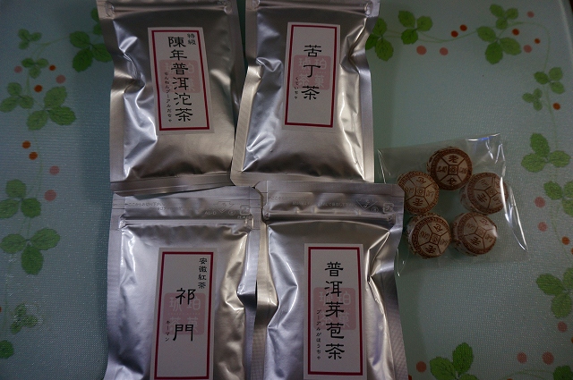 高級プーアル茶(4.5/5点)・・・2㌢角くらいでがっちり固まった緊圧茶。包丁で割ったら歯が欠けそう・・・。