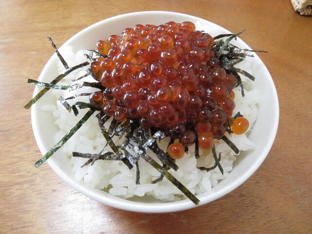 麺を食べ尽くし、ミニいくら丼をパクリ。いくらたっぷり幸せです。