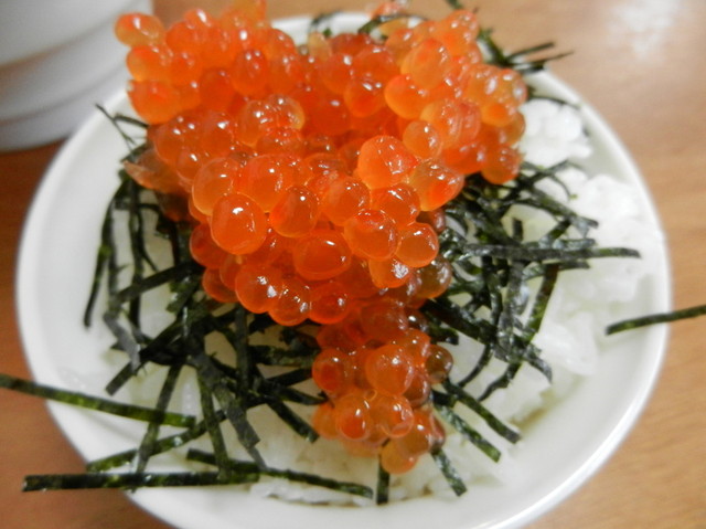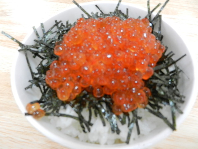 ラーメンの麺を食べつくしてから、ミニいくら丼をパクリッ!当たり前に美味ーい!いくらたっぷり。