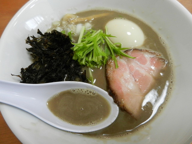 まずスープの色がセメント色です。一口啜ります。美味い!ニボニボ全開です。