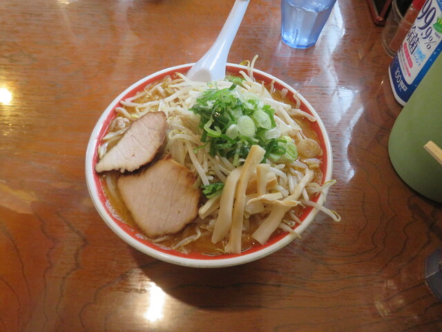 大盛りモヤシてんこ盛り。スープを一口。コレコレこの味だー!合わせ味噌のコク深い塩分強めの超濃厚味噌スープ。ニンニクが効いた甘味のある独特の味。ななななまら美味ーい!この味がスキすきスースキすー!私はもはやこの味の中毒患者(*´ω`*)