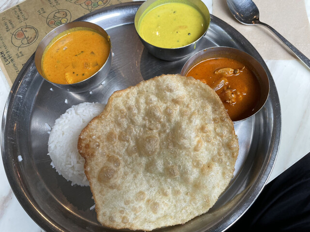 本日のカレー3種 ・ バトゥーラ ・ ライス