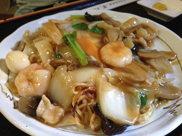 ・五目焼きそば :日本の味とは少し異なる、麺自体に