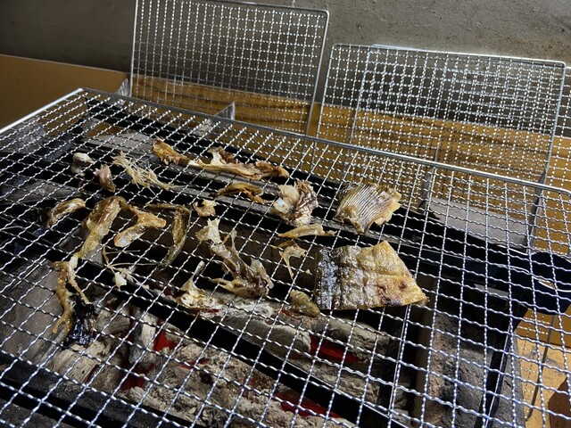 最後は、皮と骨までもパリパリに焼いていただきます。捨てるところなく命をおいしくいただくことができます。