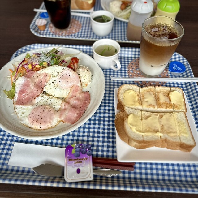 モーニングで伺いました。お腹が空いていたので、ドリンク+500円のベーコンエッグとトーストを選択。何気にハムかベーコンを選べるのがうれしい。
