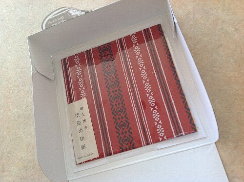 箱を開けるとキレイな型染め和紙のおまけがついています。