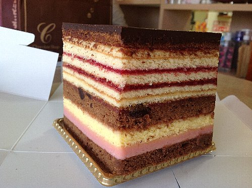その下には色鮮やかの何層にも重ねられたそれぞれ味の違うスポンジやジャム。