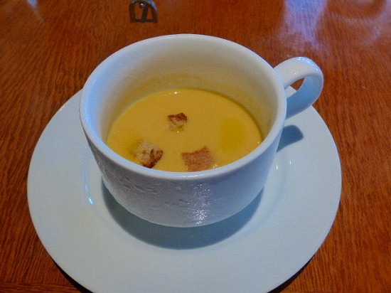 本日のスープ(※平日のみ)は人参とジャガイモの冷製ポタージュでした。