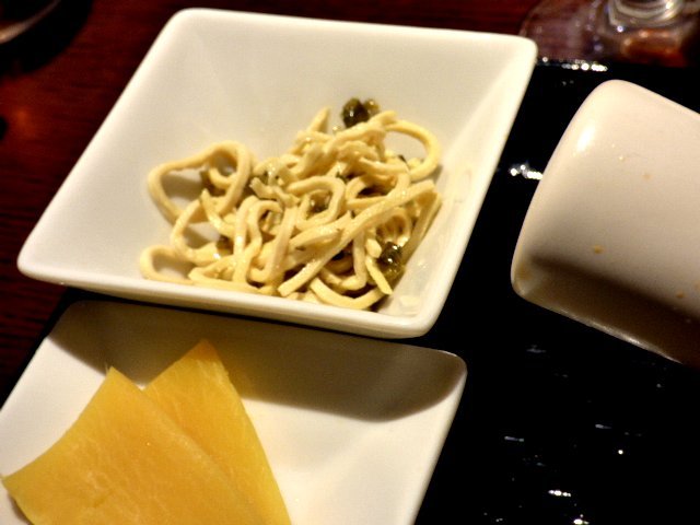 【2016・1月)小鉢:たぶん押し豆腐の糸切り。高菜と和えてあります