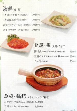 台湾小龍包、エビ蒸し餃子、海鮮塩やきそば、担々麺、麻婆豆腐、鶏の唐揚げ、エビチリ、鶏モモの中華風照り焼き