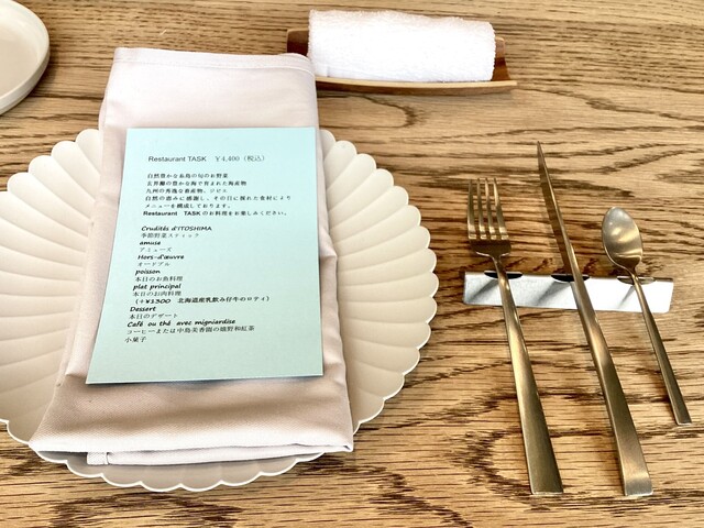 ⚪︎ランチ内容→季節野菜スティック→アミューズ→オードブル→本日のお魚料理→本日のお肉料理(+料金でグレードアップできます)→本日のデザート→コーヒーまたは中島美香園の嬉野和紅茶・小菓子