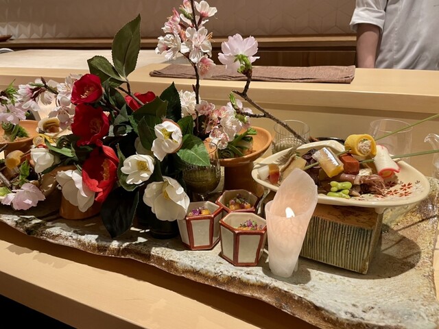 八寸はいつもどおり圧巻の美しさ。控えめな品数のように見えて、1品ずつのボリュームが結構あり、ここでほぼ満腹状態。お酒すすみまくり。