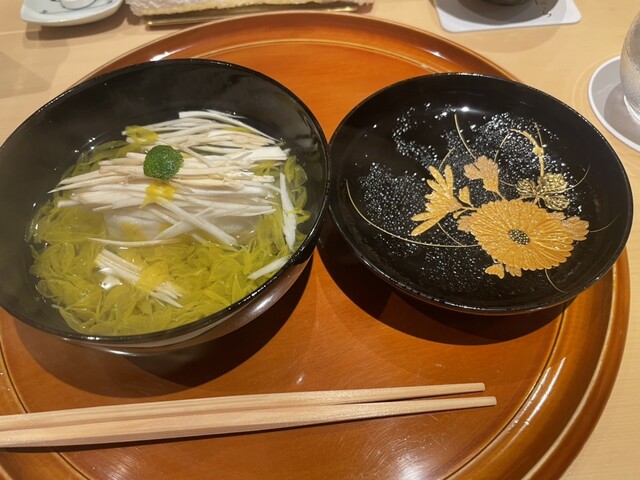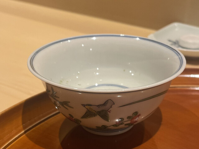 いつもの吸い地ですが、少し昆布が前面に出ます。篠原さんに聞くと、お水を変えたせいだそうです。先月、少し鮪節を強く感じたことも聞いてみると、そのとおり。お店のみなさんも、お水が同じだと秋になるにつれ、鮪節が強く感じるようになるのだとか(その理屈は理解できませんでしたが)。こちらで、美味しいものたくさん頂いたおかげで、味覚もあがったかも。嬉しい。