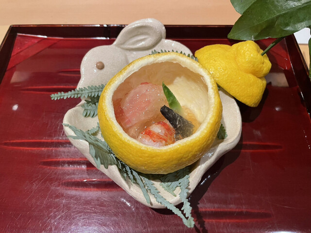 【先付:柚子釜になまこ粥】