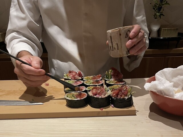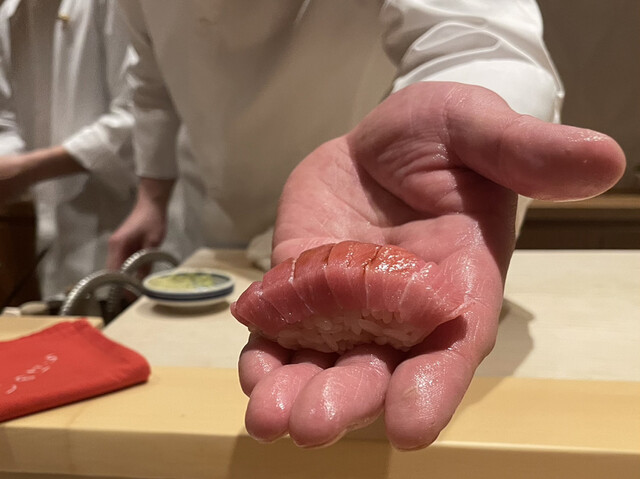 何より、お店の雰囲気が明るいのがとても素敵でした。お客さんとの会話はもちろん、お弟子さんたちへの指示にも圧は全くなく、普通に笑って大将と弟子がやりとりする、あるようでない光景だと思います。お弟子さんへのピリピリした雰囲気は、客側には決して心地良くないものだったのだ、と改めて気付かされます。この雰囲気づくりを含めて、おもてなしとお考え、と伺えます。