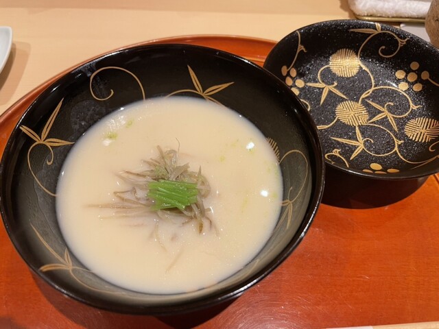 甘鯛の皮の炙り目も香ばしく。新銀杏のすり流しの濃さというか薄さというか、が絶妙でとても美味しかったです。