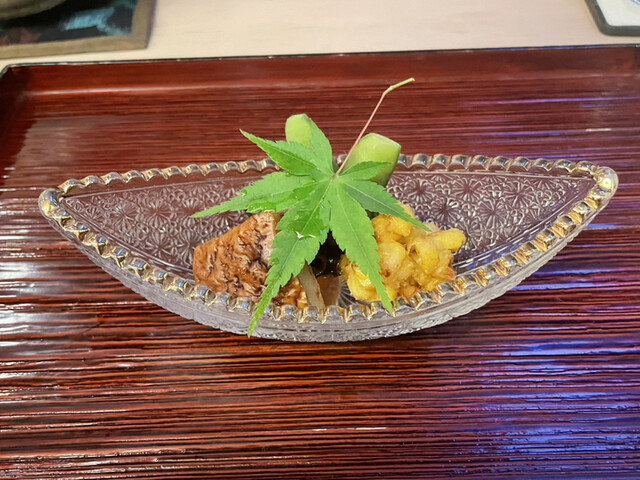 すだち(だったと思います)が絞られ、さっぱりと夏らしい。鮑がとても柔らかくさっぱりと仕上がっていました。